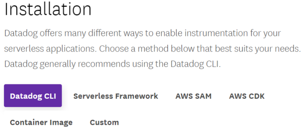 기본적인 Datadog 구성은 위와 같고 서버리스 프레임워크 등 사용자 환경에 따라 다양한 방법을 지원한다.
