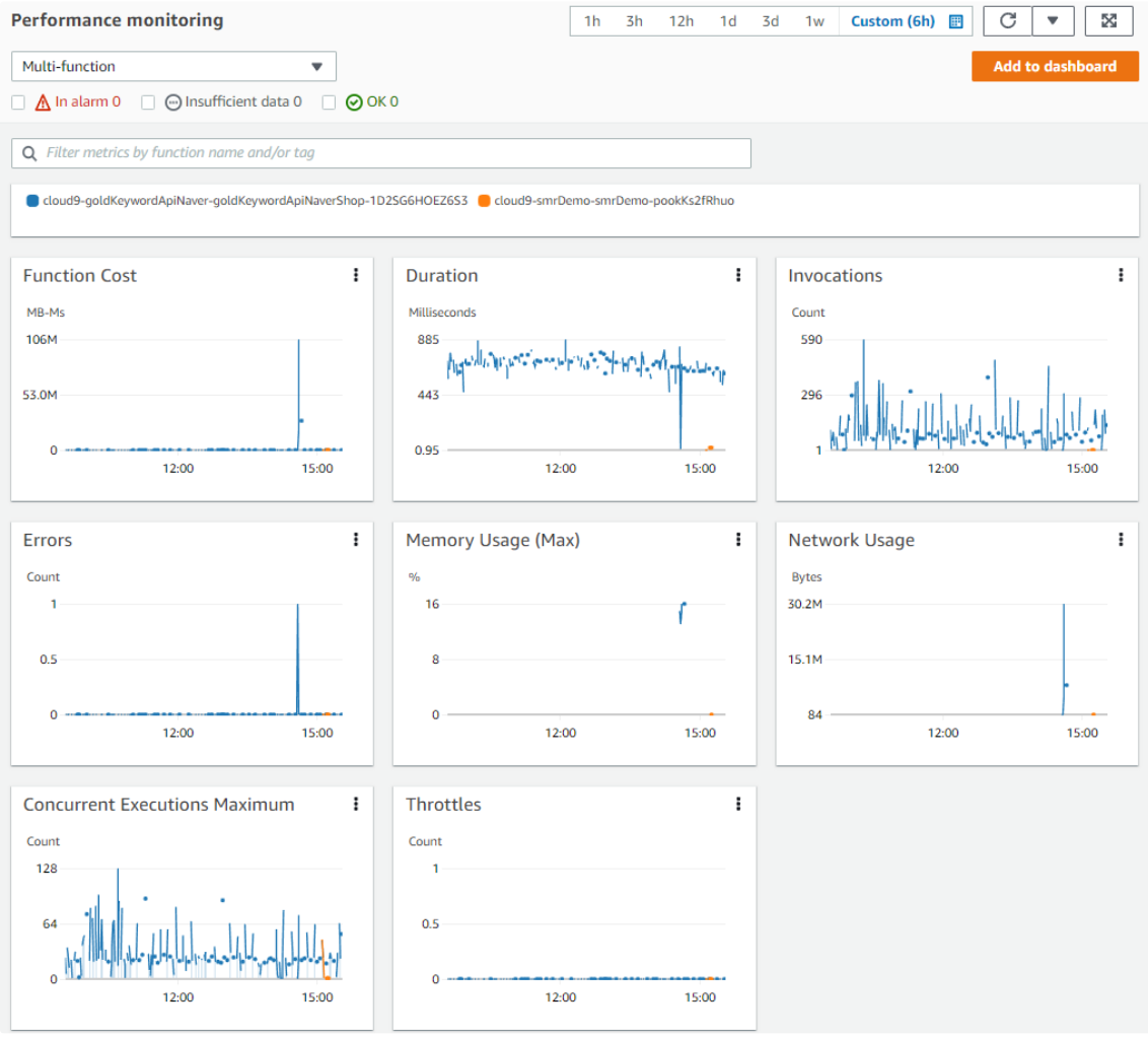 전체 Lambda Function에 대한 성능 모니터링