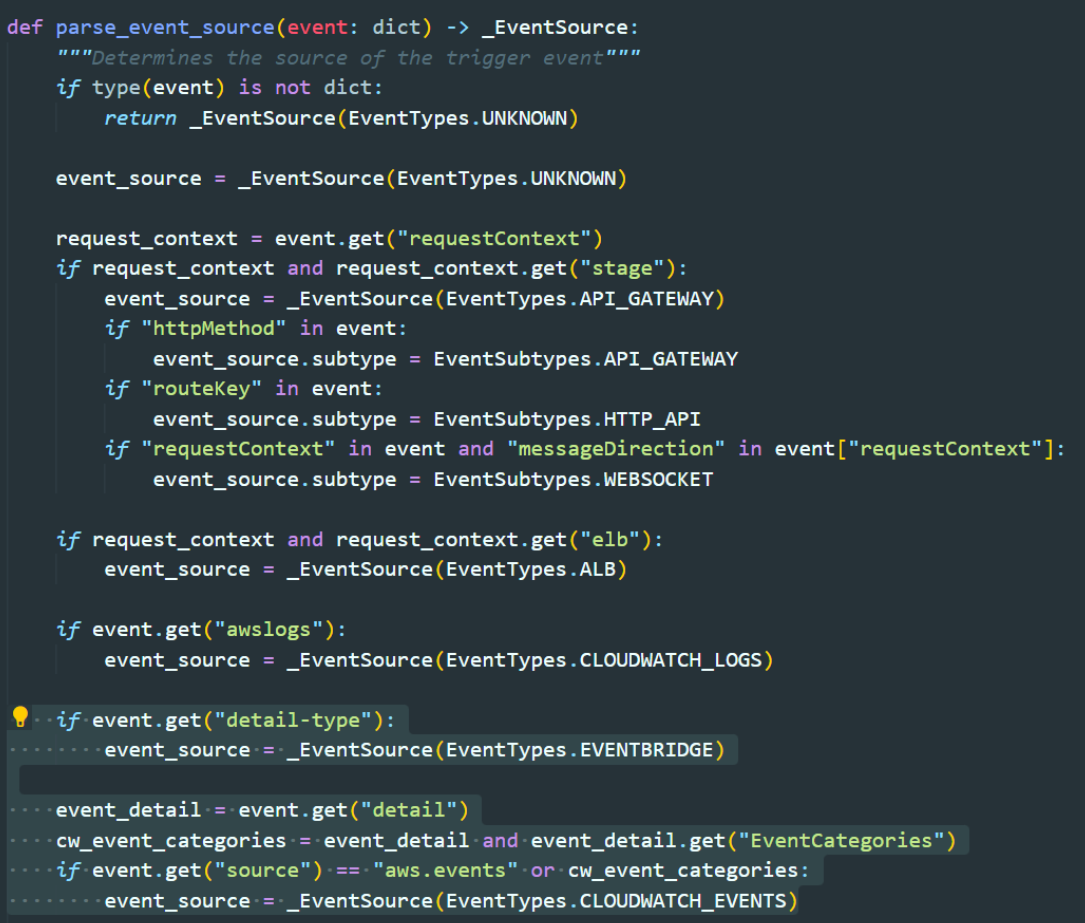 해당 펑션에 EventBridge 관련 어트리뷰트를 서칭하는 조건문을 추가했다.