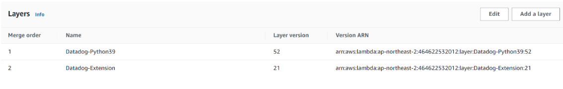 Lambda Layers에 Datadog Layer를 추가